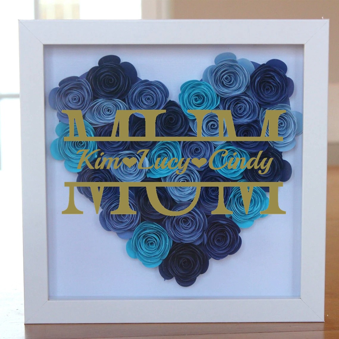 Mum Heart Shaped Monogram Flower Shadow Box Gift For Mothers