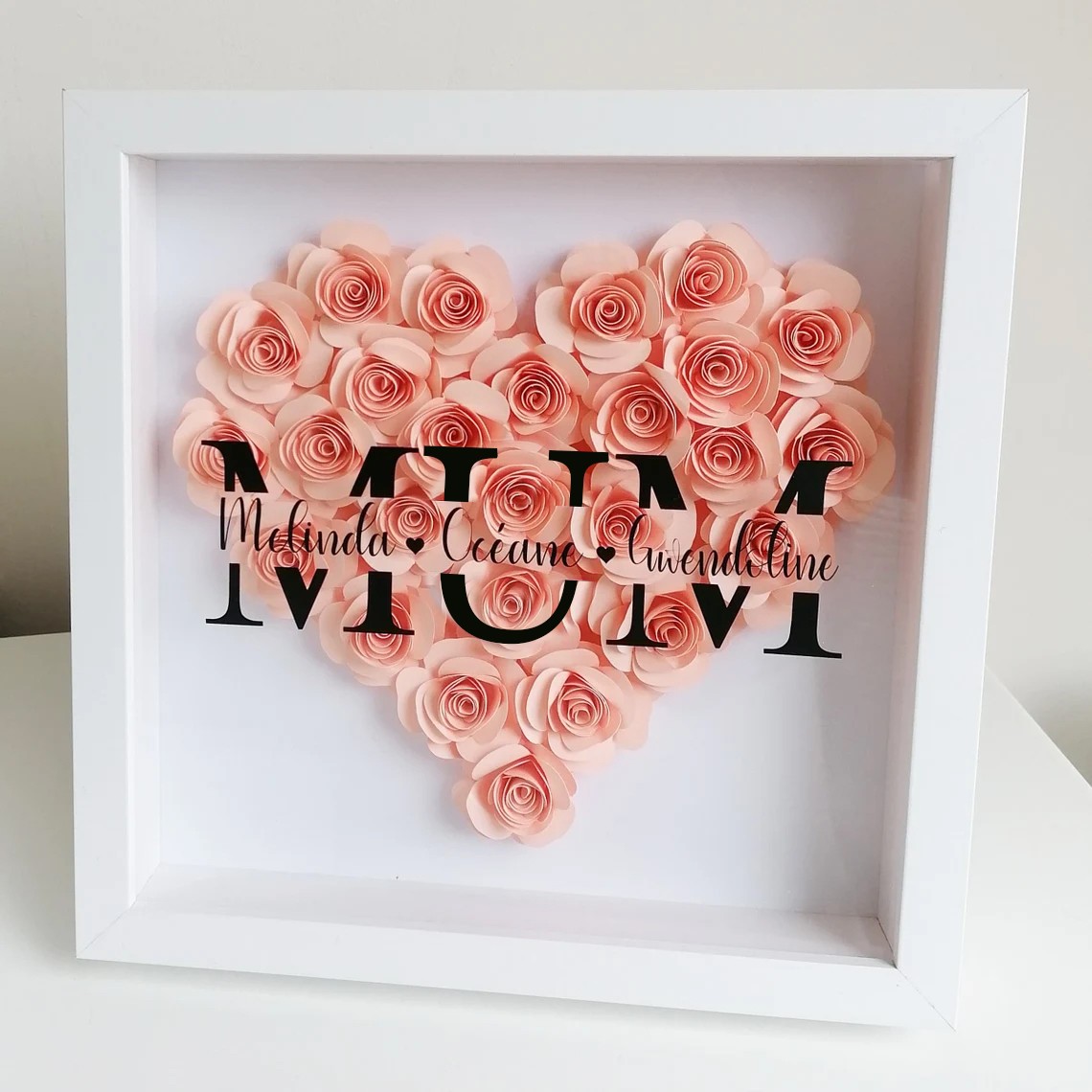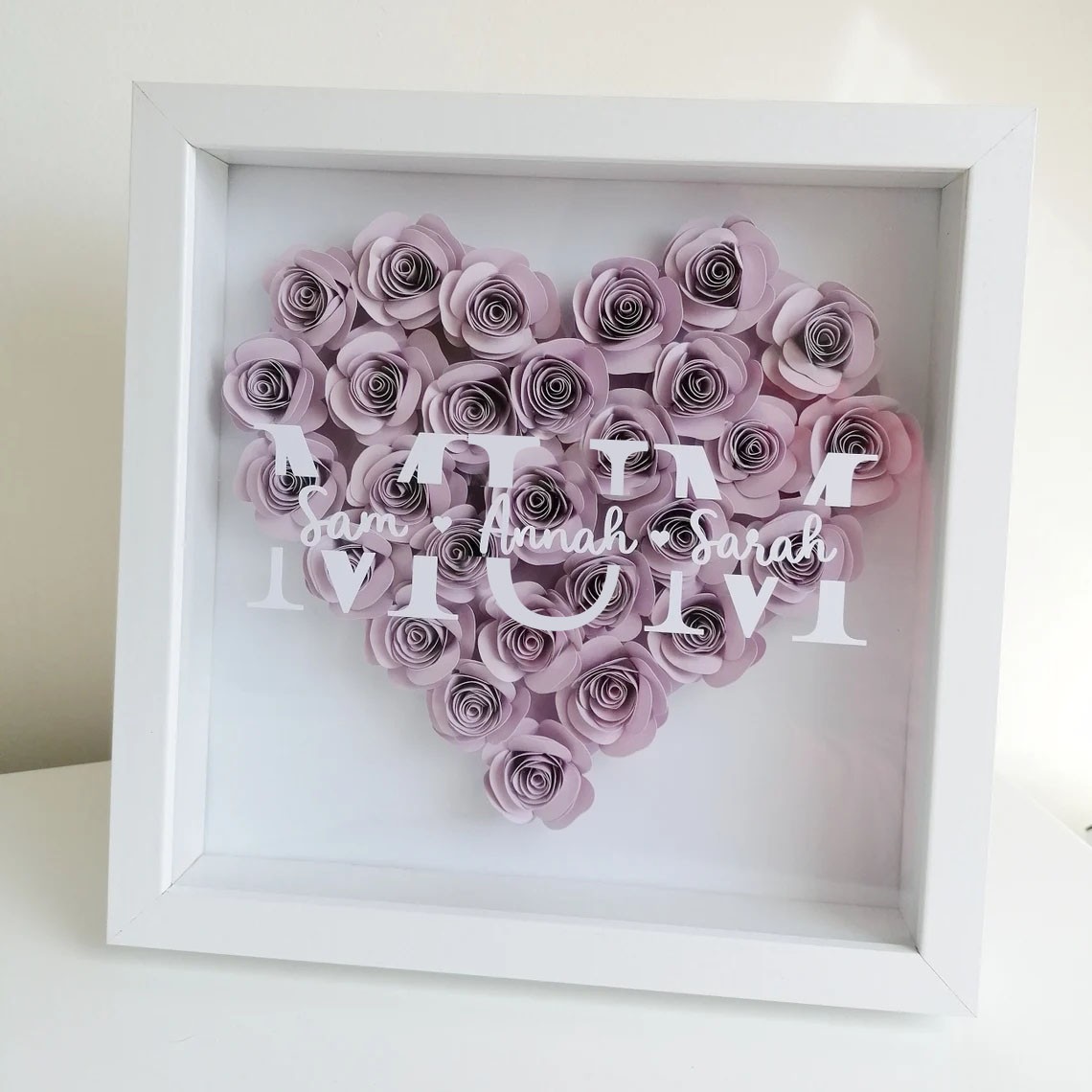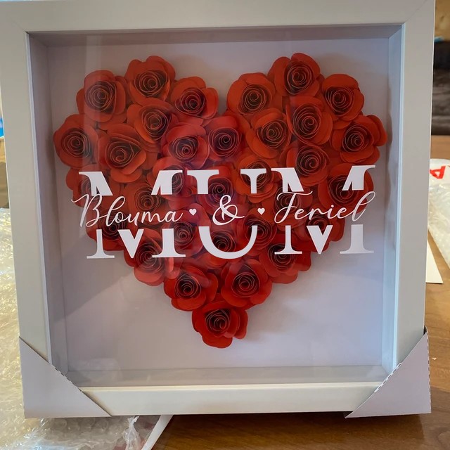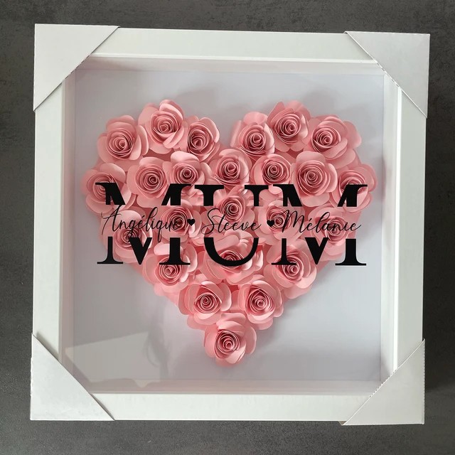 Mum Heart Shaped Monogram Flower Shadow Box Gift For Mothers