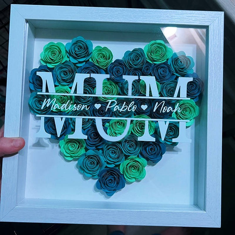 Mum Heart Shaped Monogram Flower Shadow Box Gift For Mothers