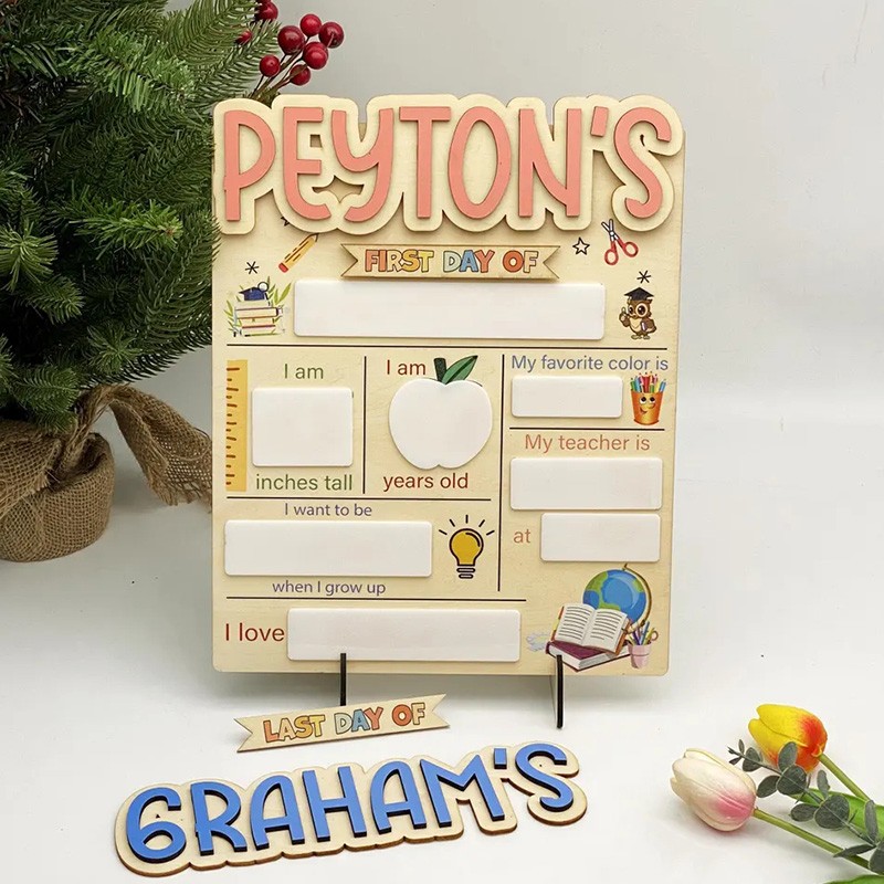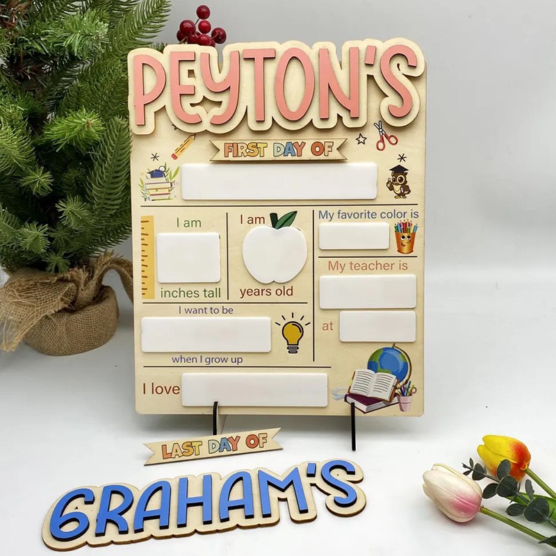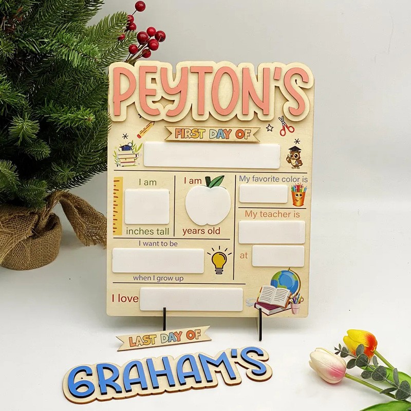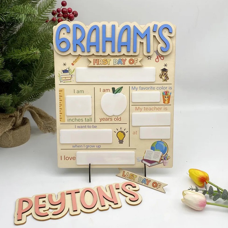 Personalized First Day of School Sign Interchangable Back to School Board Gift for Kid