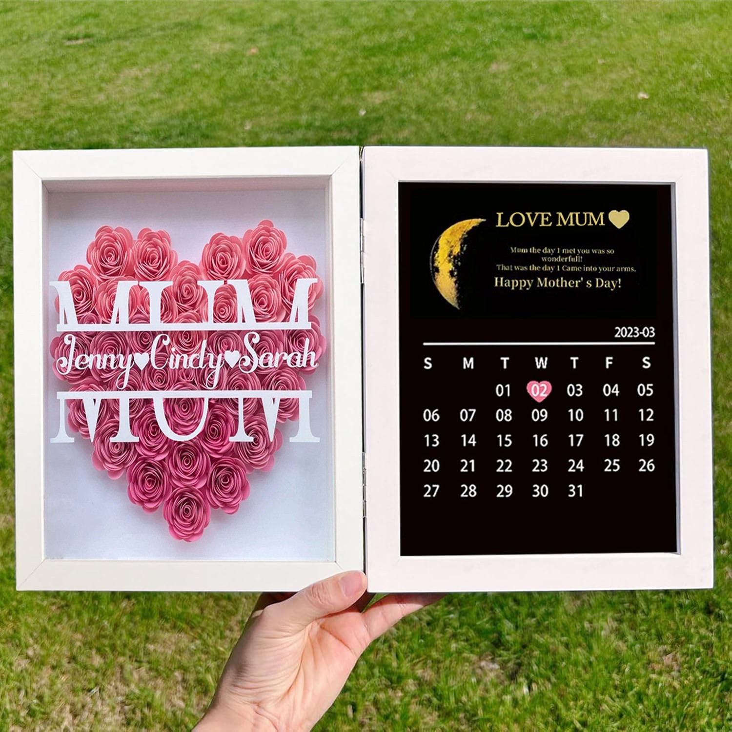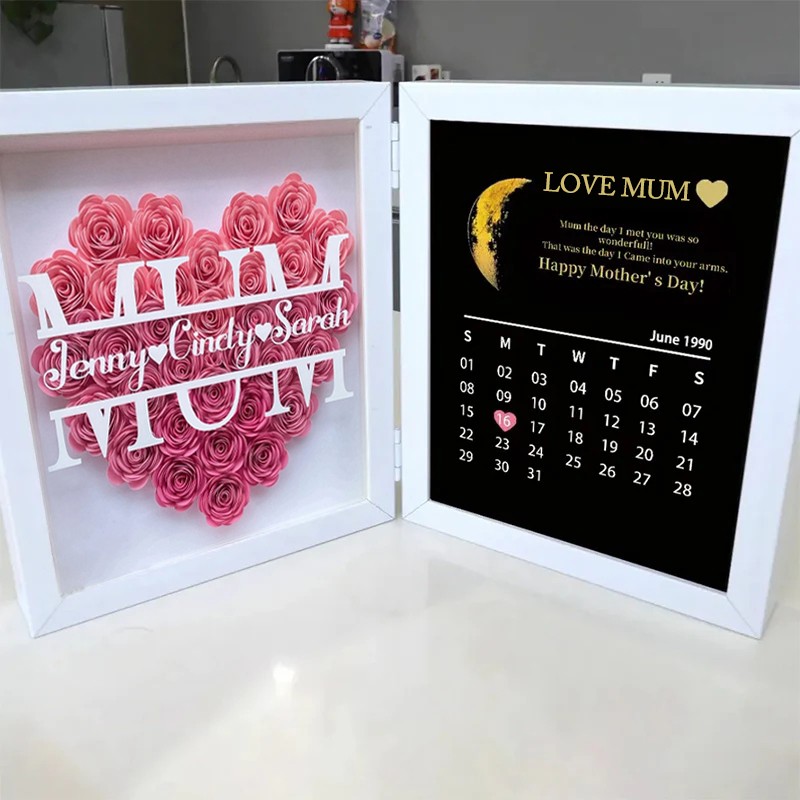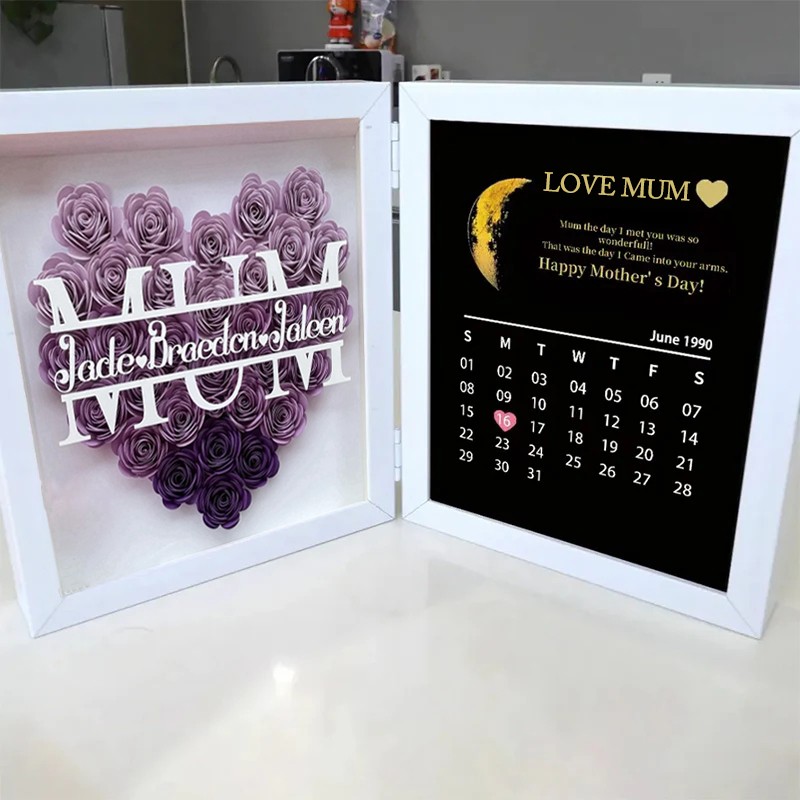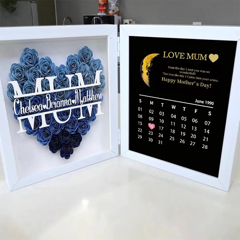 Personalized Moon Phase Flower Shadow Box Frame Mothers Day Gift for Mum
