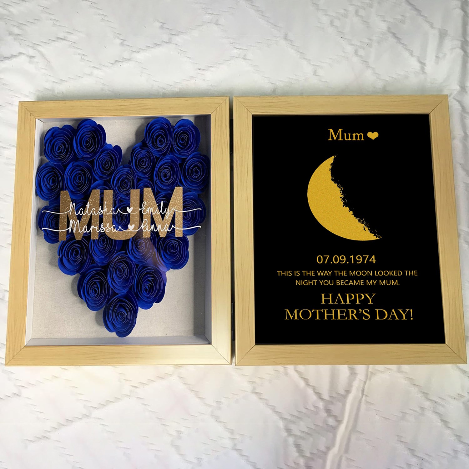 Personalized Moon Phase Flower Shadow Box Frame Mothers Day Gift for Mum
