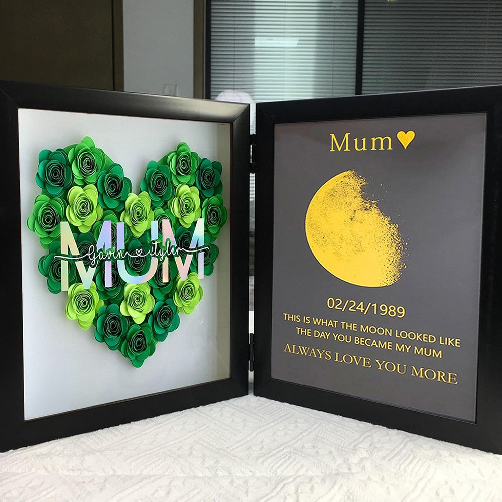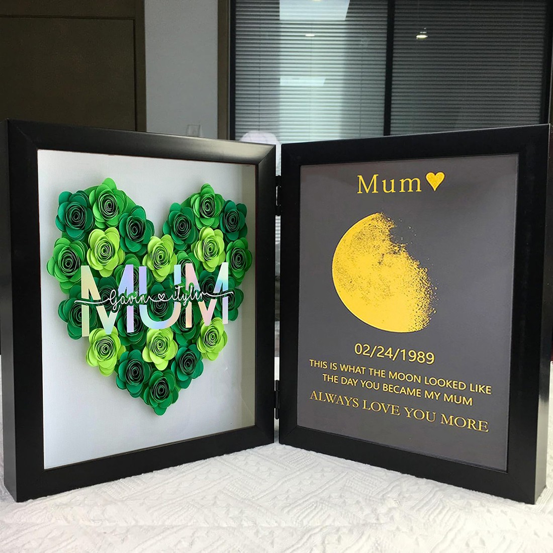 Personalized Moon Phase Flower Shadow Box Frame Mothers Day Gift for Mum