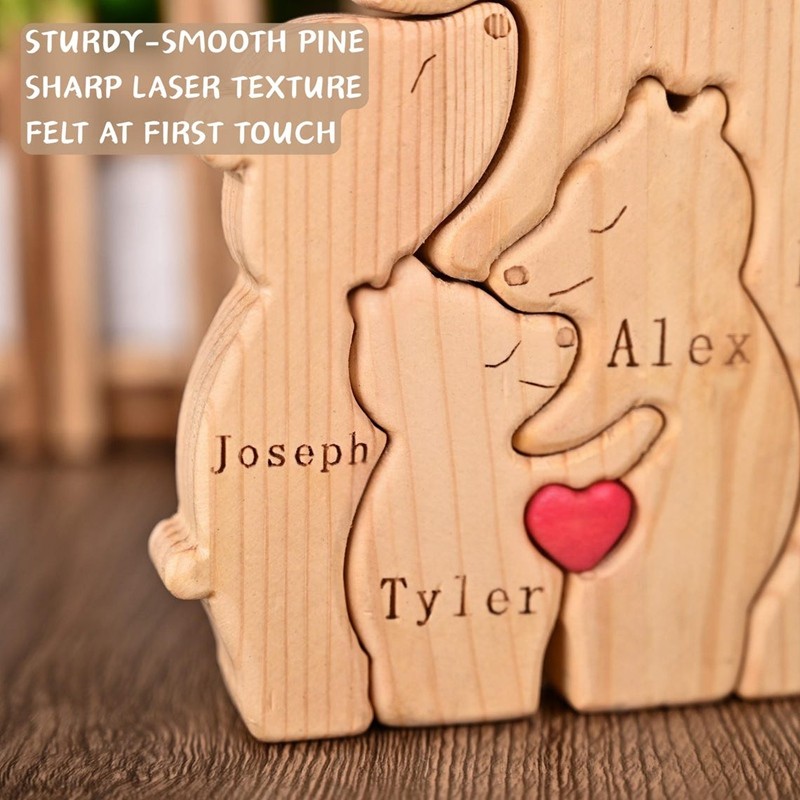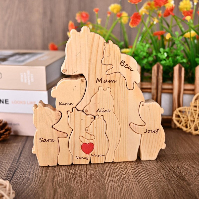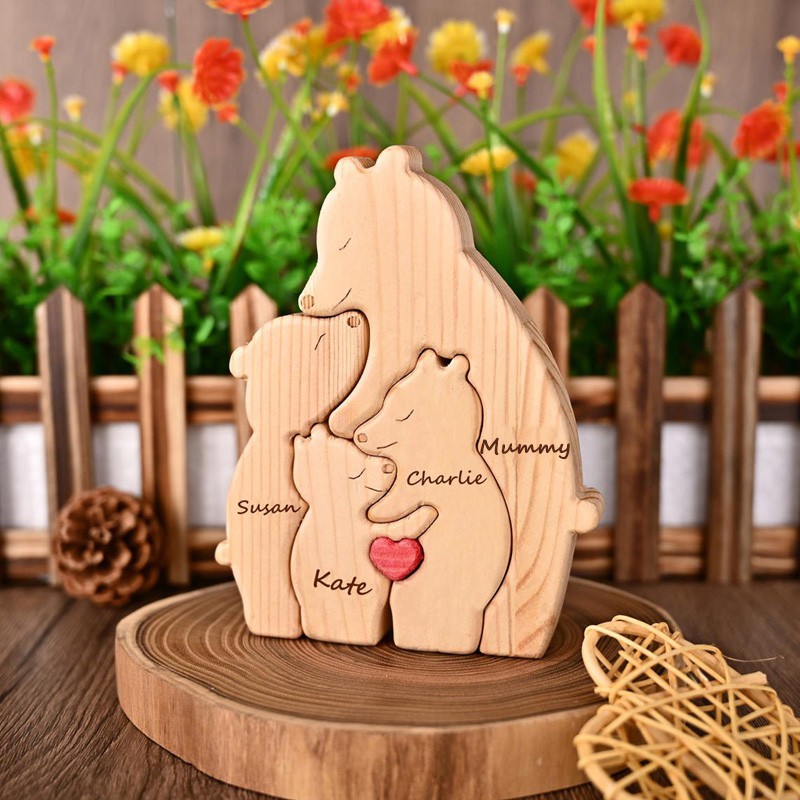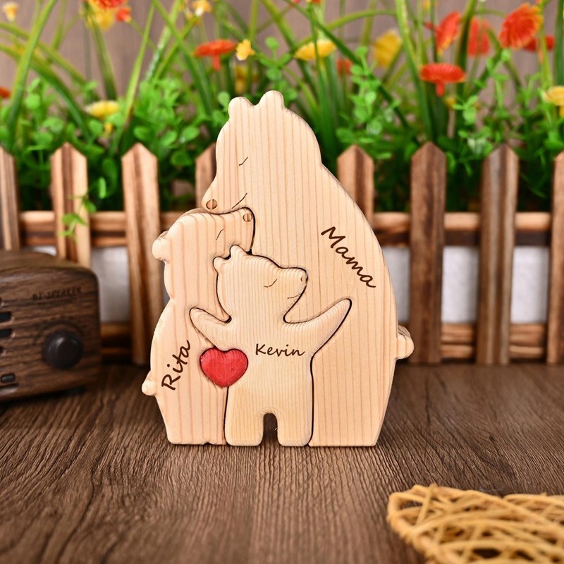 Personalized Wooden Bear Family Puzzle with Names for Mum