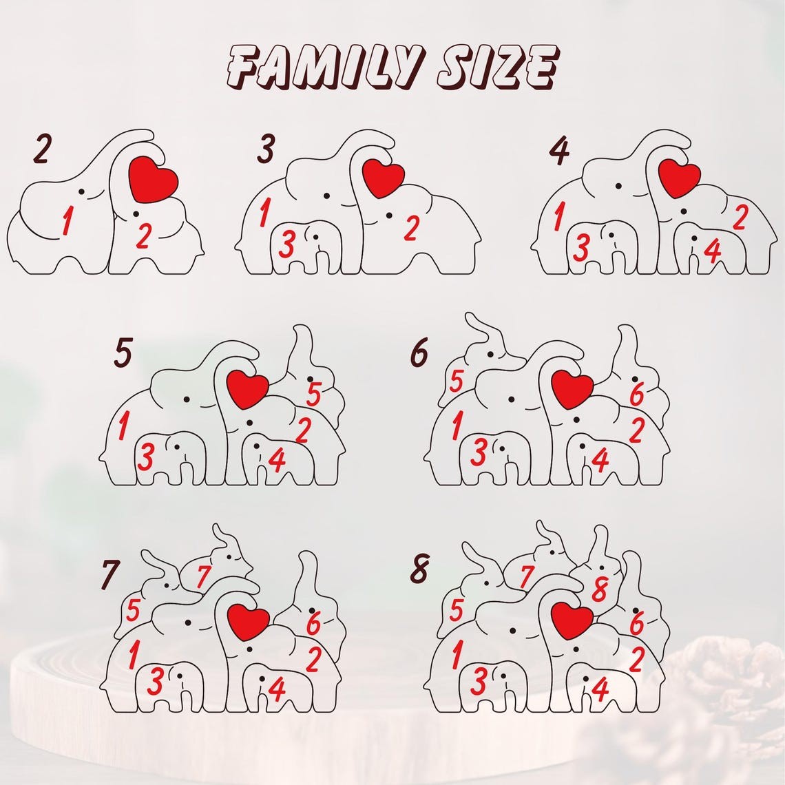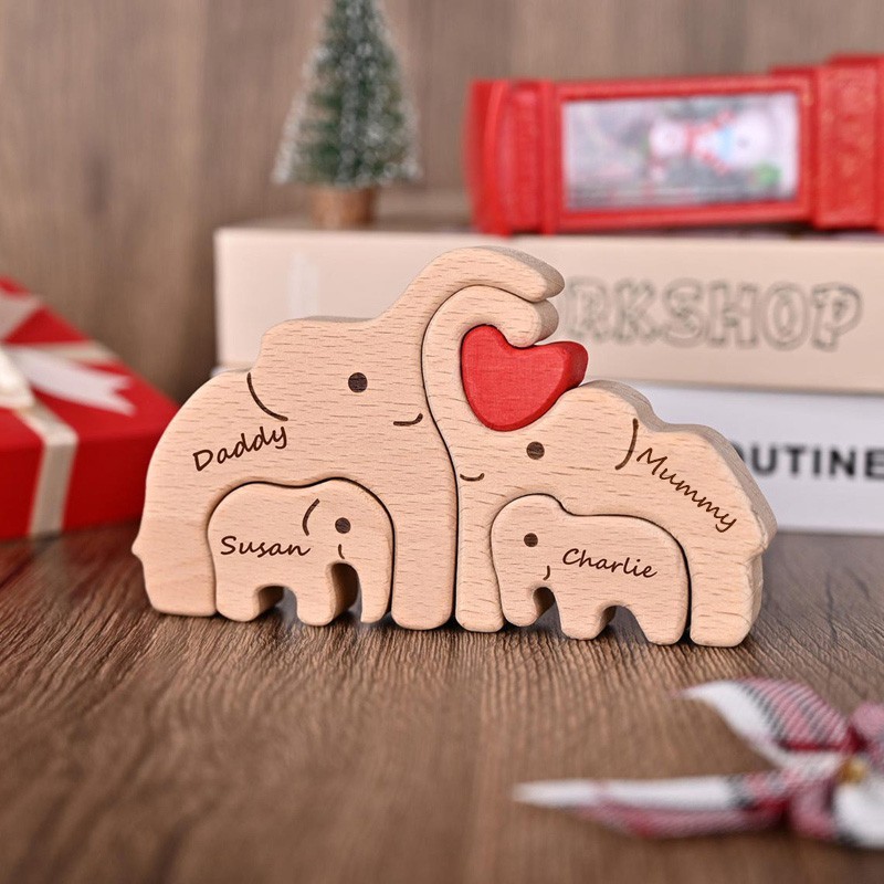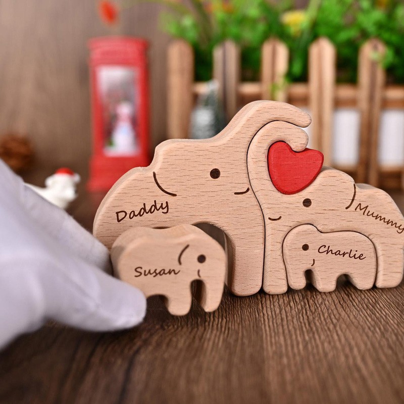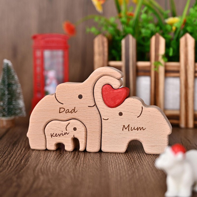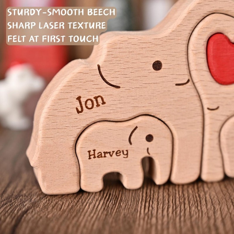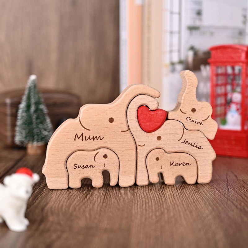 Personalized Wooden Elephant Family Puzzle with Names for Mum