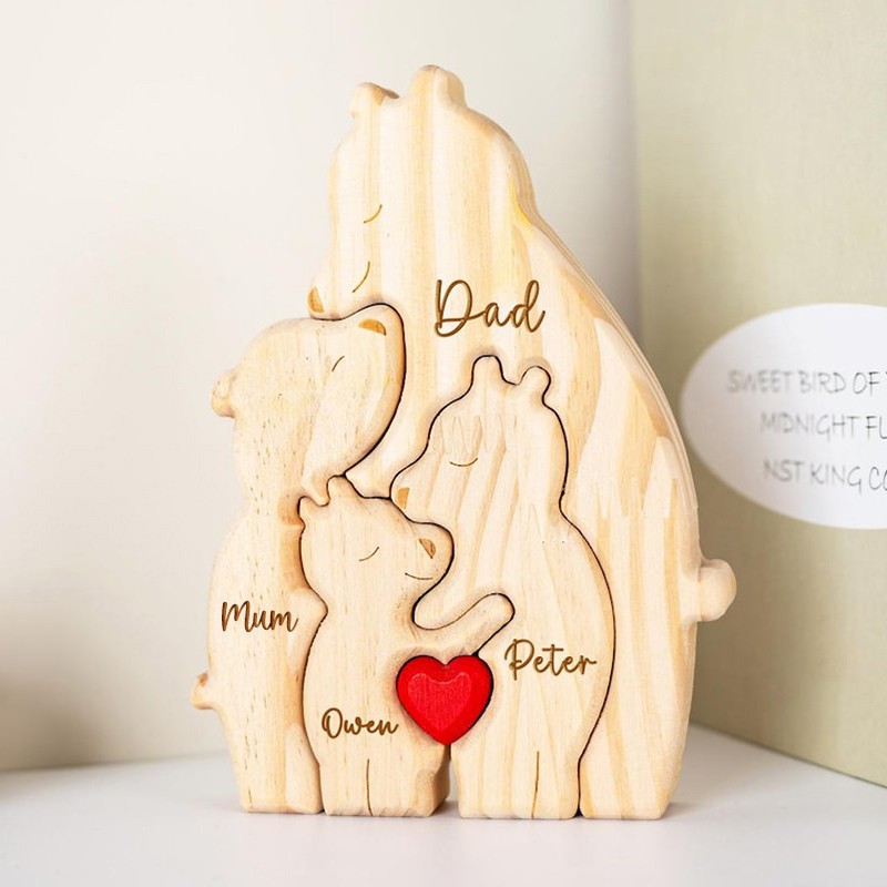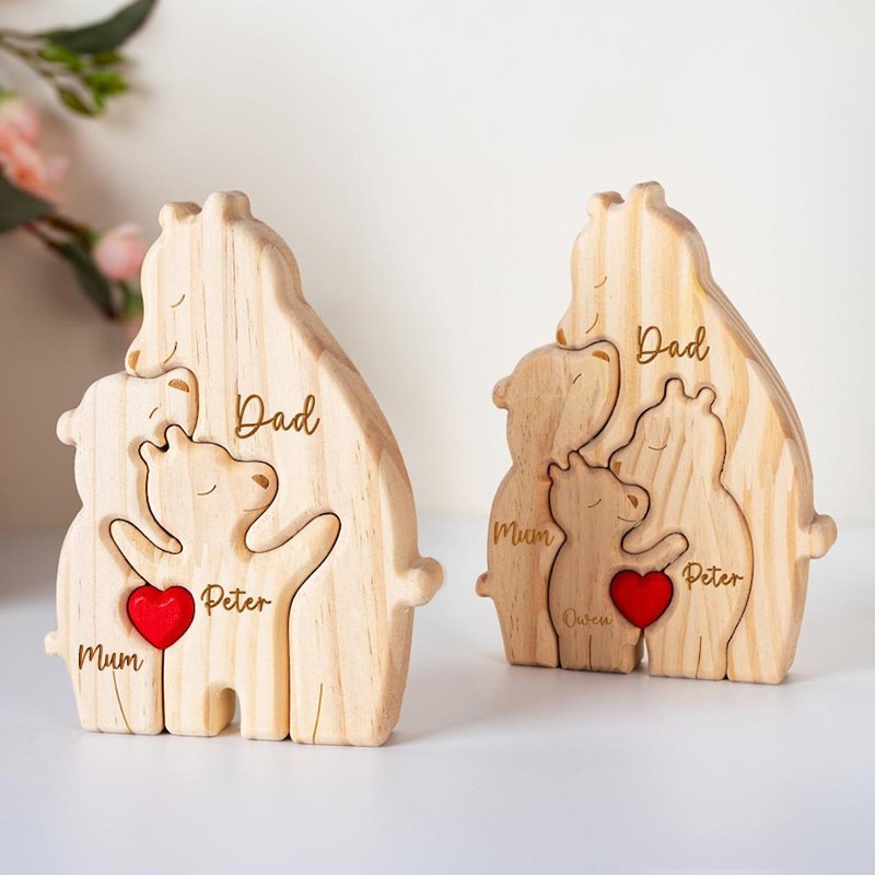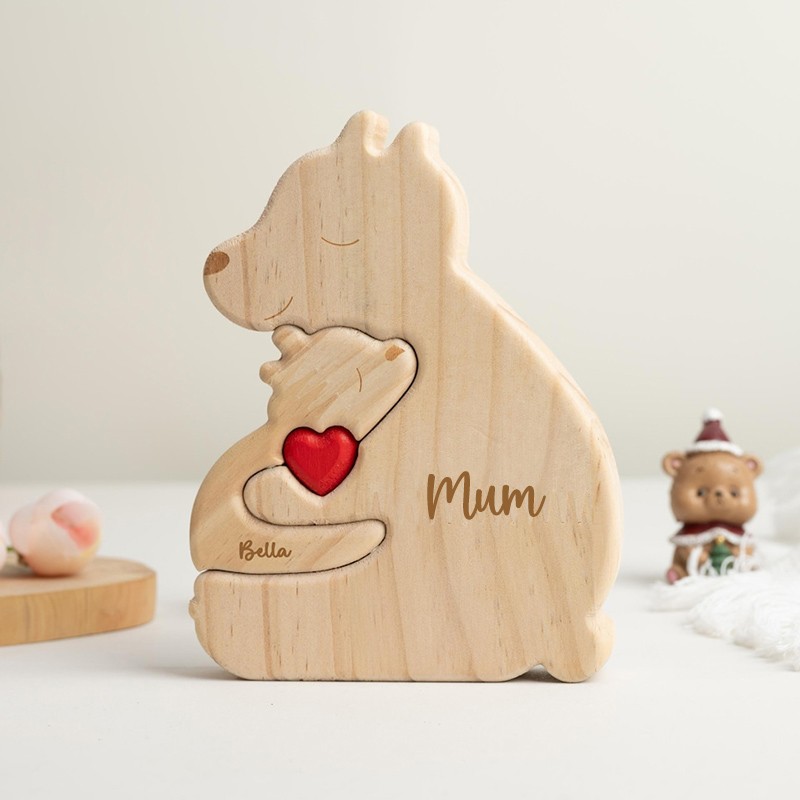 Personalized Wooden Mum and Baby Bear Puzzle with Names for Mum