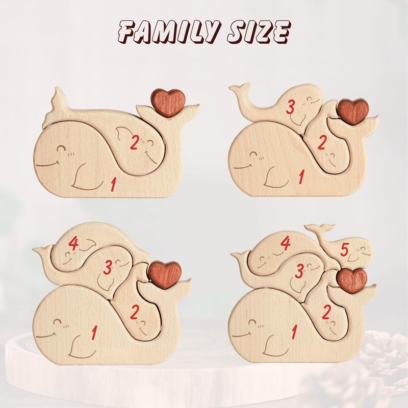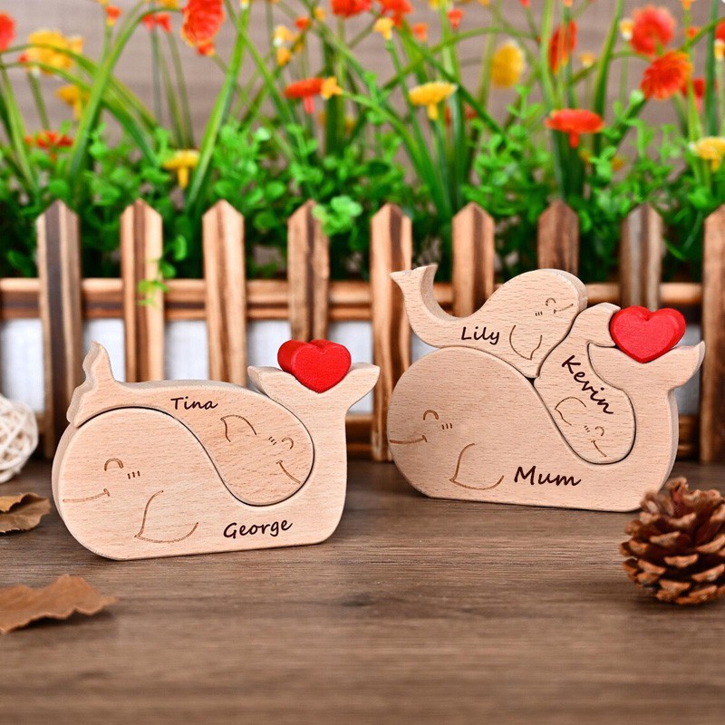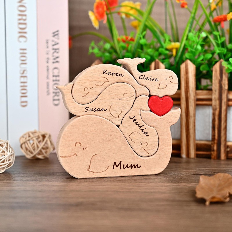 Personalized Wooden Whale Family Puzzle with Names for Mum